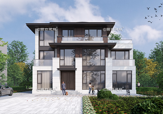 占地面積 134.8㎡ 土建造價 45.0萬 三層中式田園風格別墅